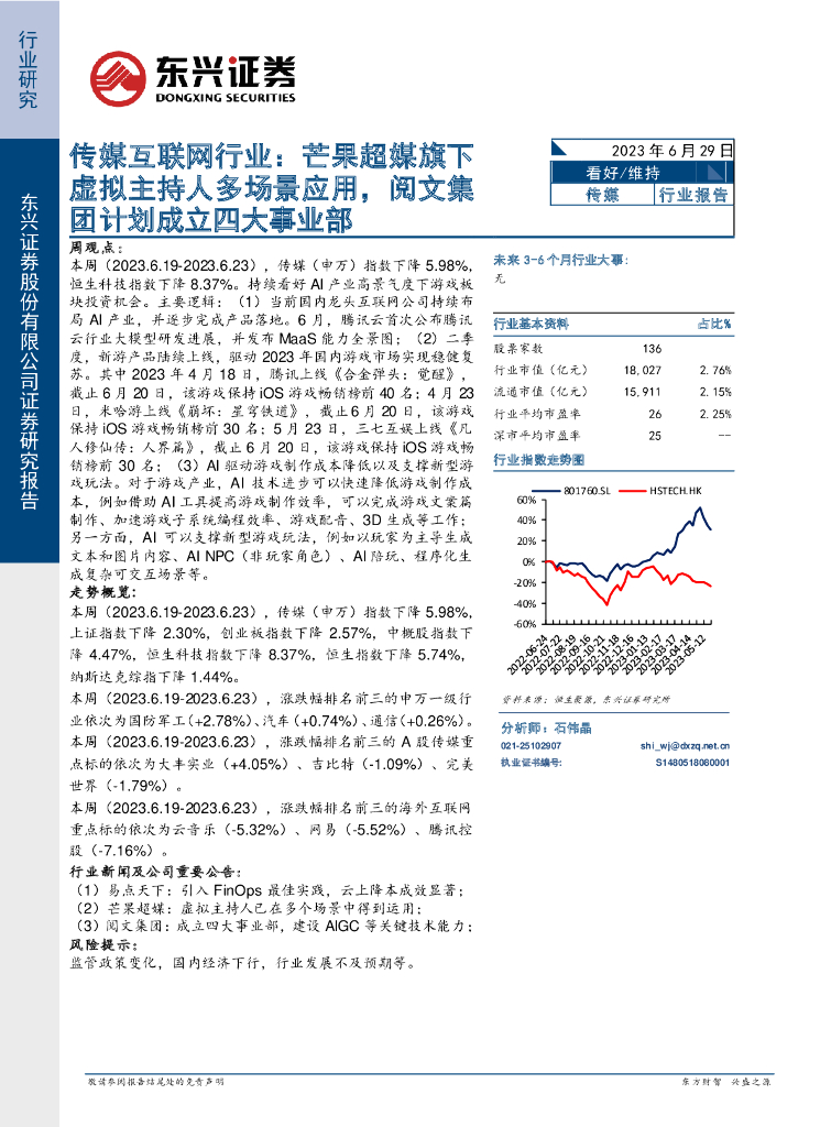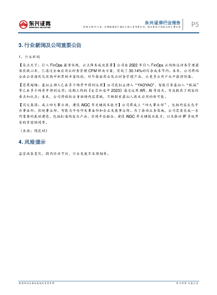 东兴证券:传媒互联网行业:芒果超媒旗下虚拟主持人多场景应用,阅文集团计划成立四大事业部.pdf