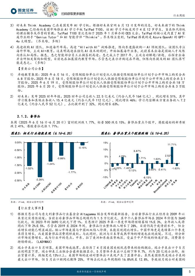 国信证券:社会服务行业双周报(第115期):凯文教育携手智谱华章,成立合资公司布局AI教育