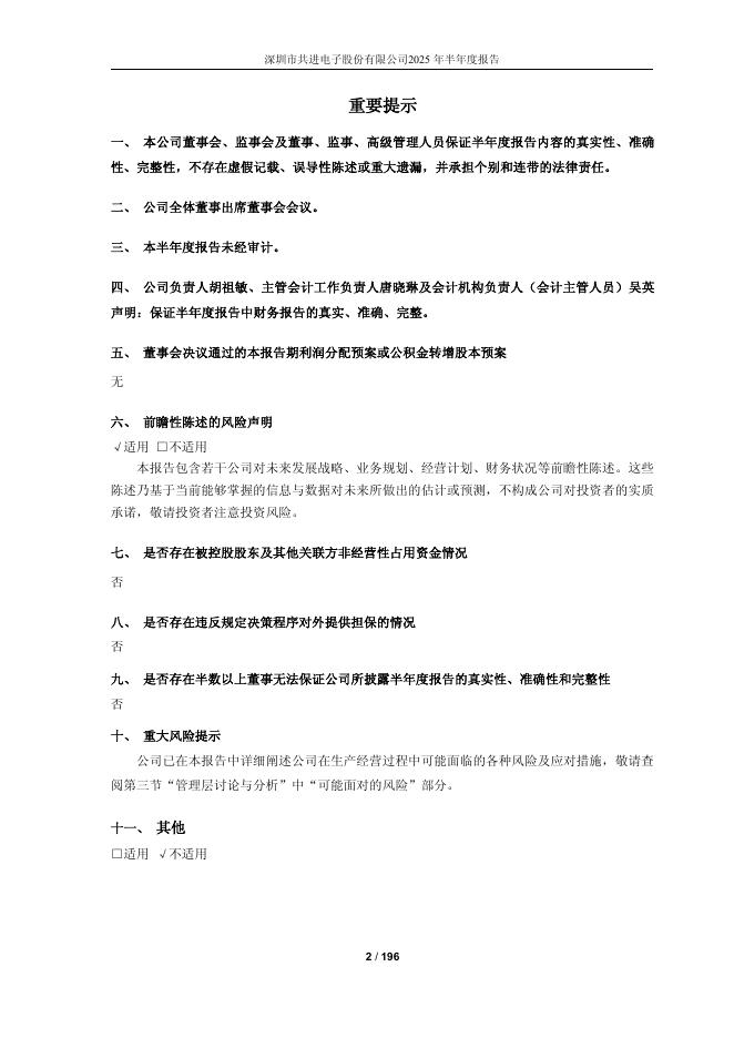 603118-共进股份:深圳市共进电子股份有限公司2025年半年度报告.pdf