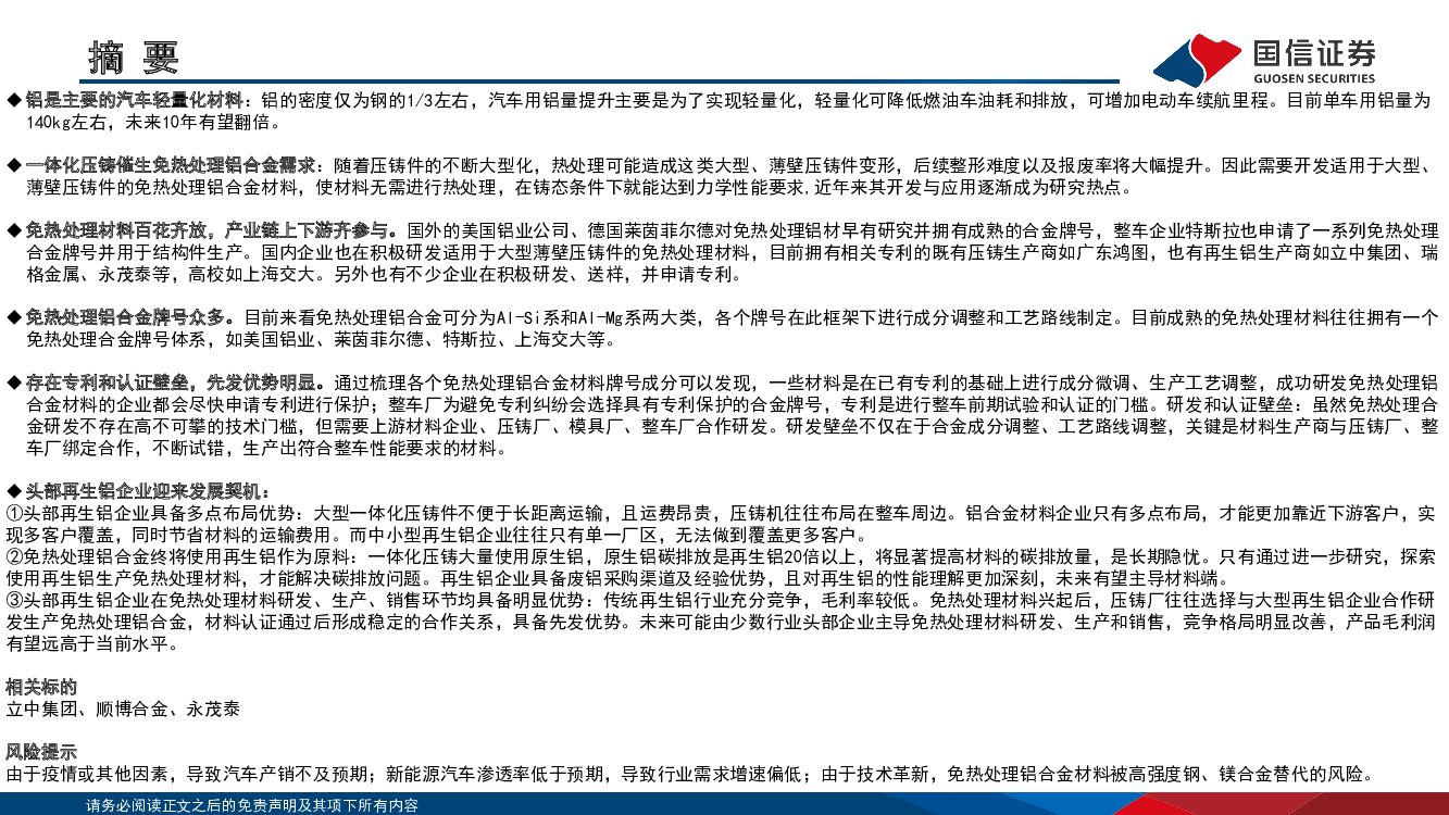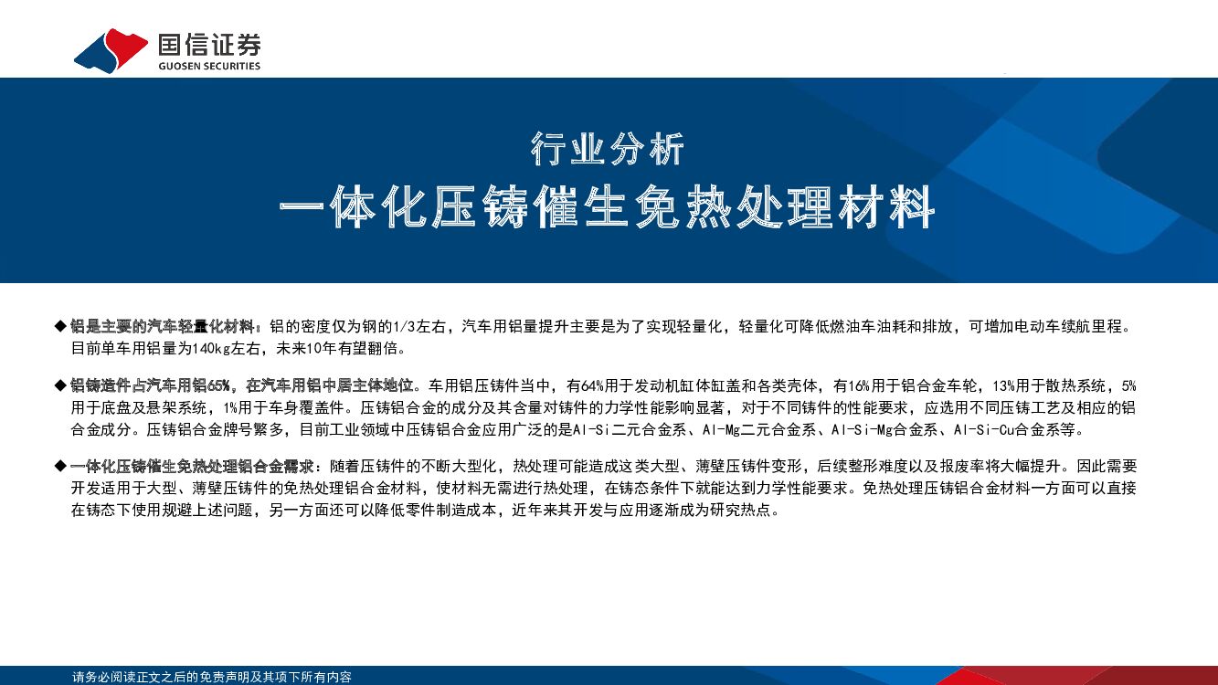 国信证券:免热处理铝合金材料行业专题:一体化压铸催生需求,再生铝头部企业受益.pdf