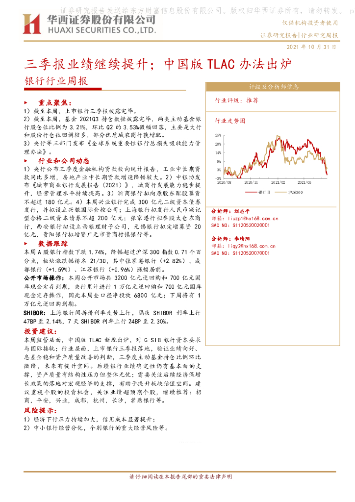 华西证券:银行行业周报:三季报业绩继续提升;中国版TLAC办法出炉.pdf
