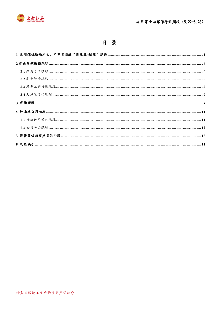 西南证券:公用事业与环保行业周报:本周煤价跌幅扩大,广东省推进“新能源+储能”建设.pdf