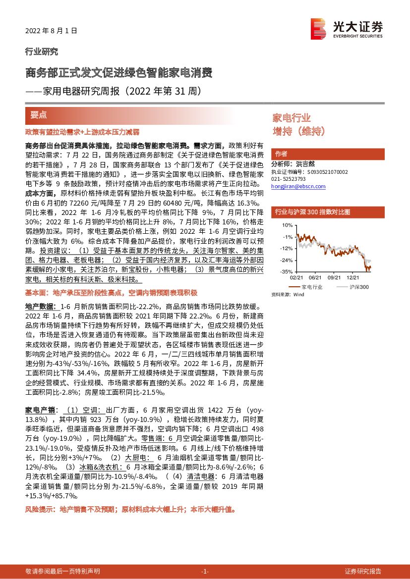 光大证券:家用电器研究周报(2022年第31周):商务部正式发文促进绿色智能家电消费.pdf