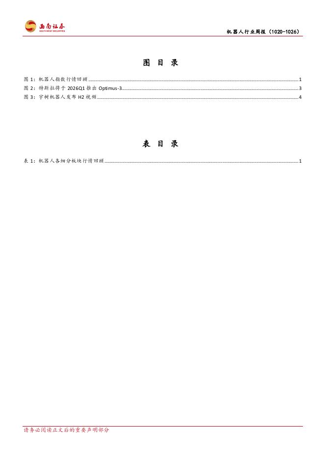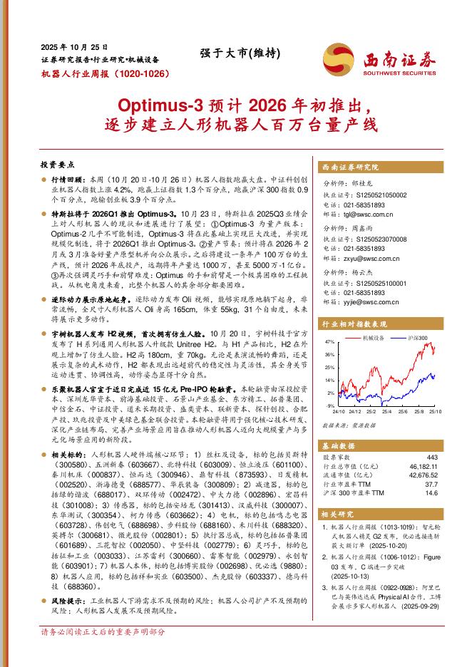 西南证券:机器人行业周报:Optimus-3预计2026年初推出,逐步建立人形机器人百万台量产线.pdf