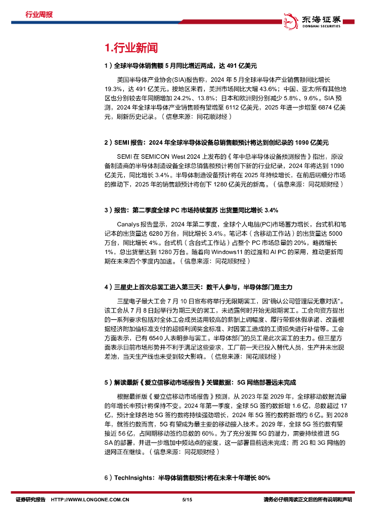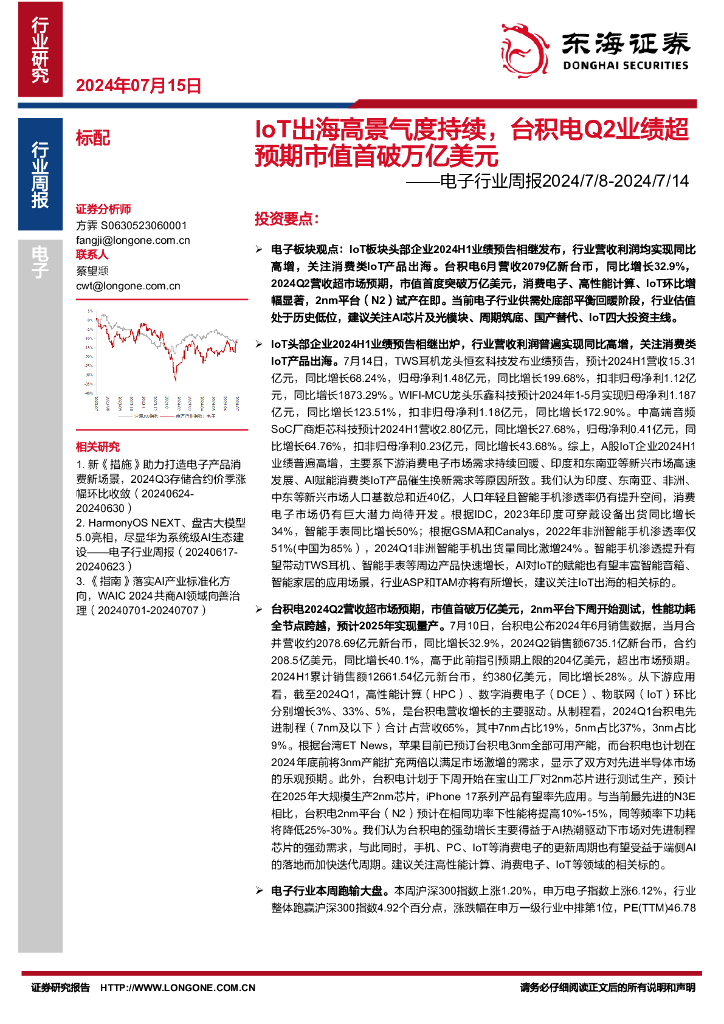东海证券:电子行业周报:IoT出海高景气度持续,台积电Q2业绩超预期市值首破万亿美元.pdf
