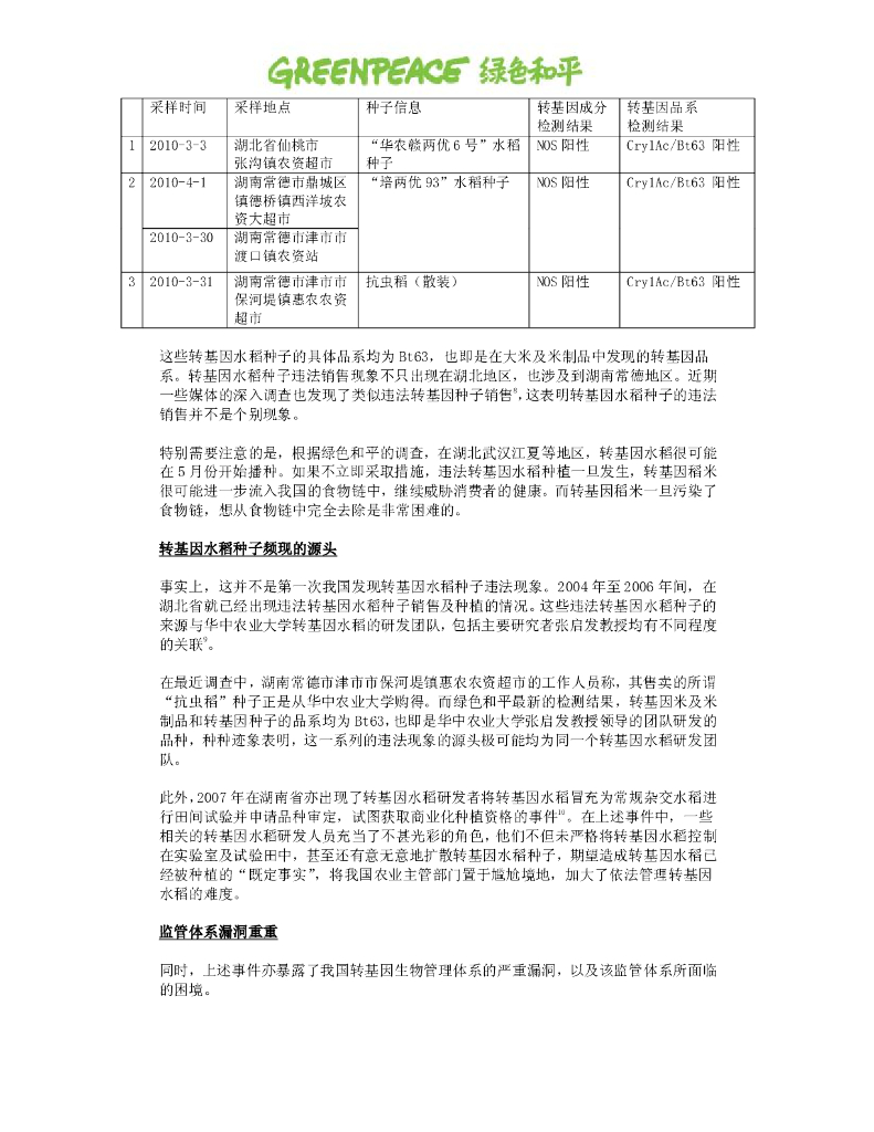 绿色和平:中国九地区流通领域转基因稻米、米制品及转基因稻种调查报告.pdf
