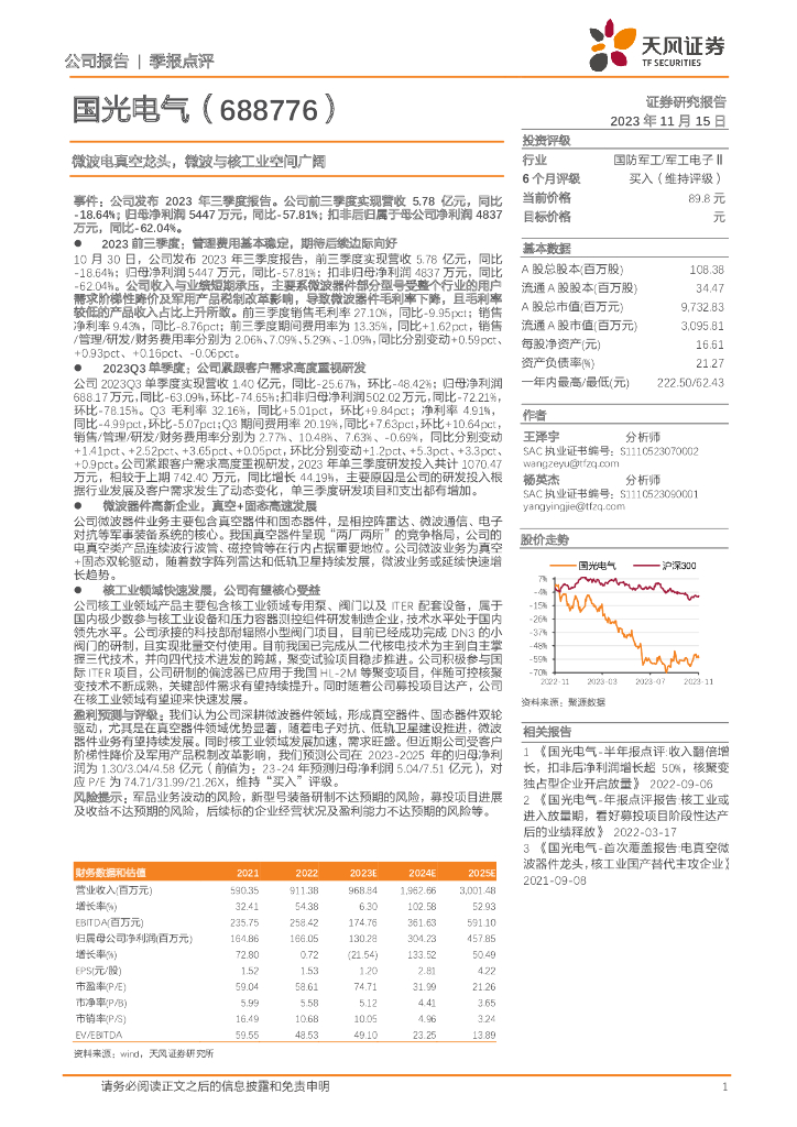 天风证券:国光电气(688776)-微波电真空龙头,微波与核工业空间广阔.pdf