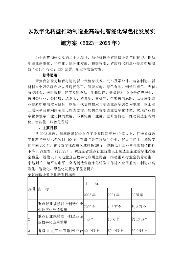 以数字化转型推动制造业高端化智能化绿色化发展实施方案(2023—2025年).doc