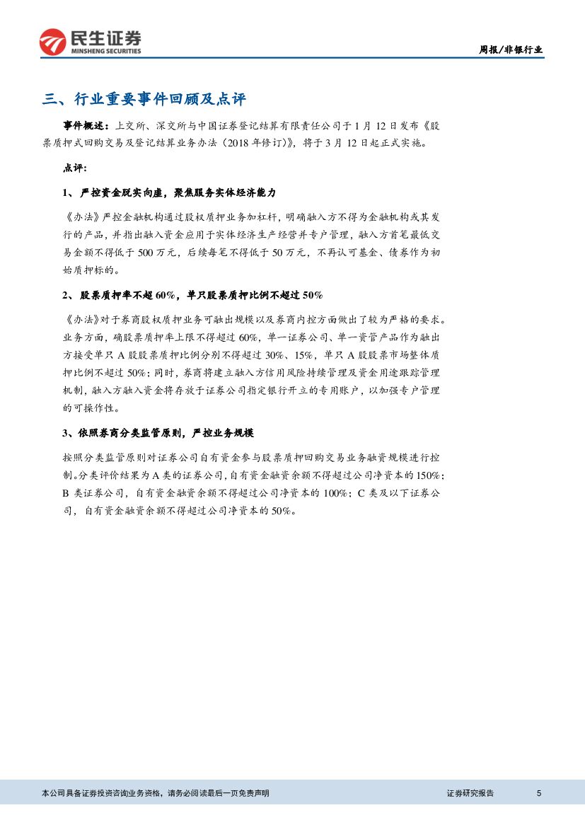 民生证券:非银行业周报:股权质押迎新规,券商行业影响总量可控.pdf