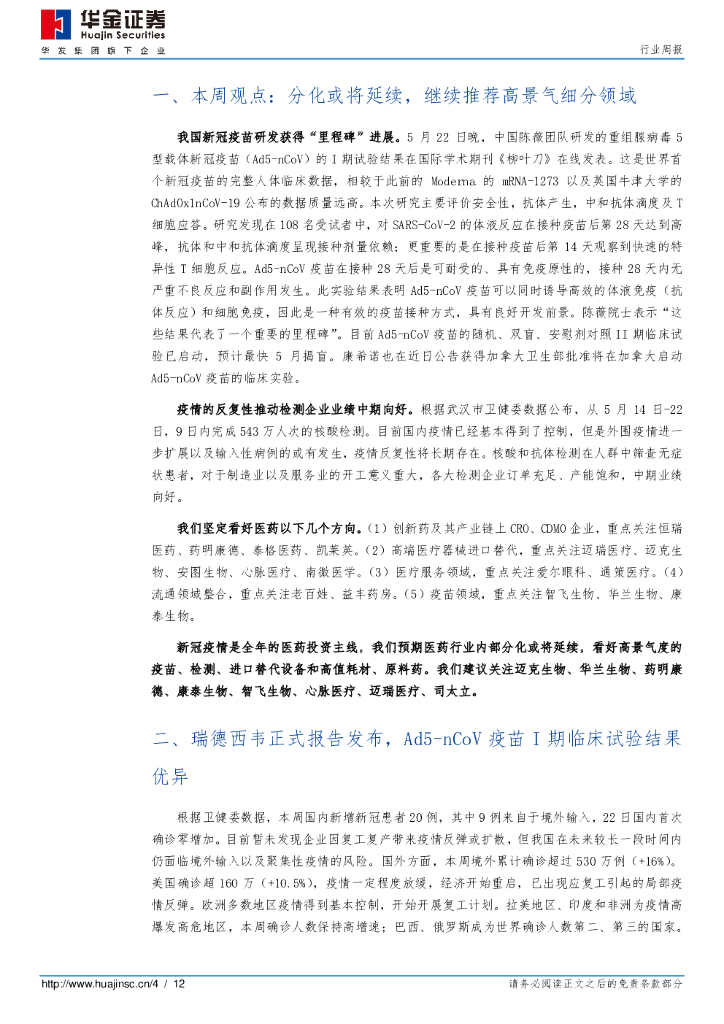 华金证券:医药行业周报:分化或将延续,继续推荐高景气细分领域.pdf