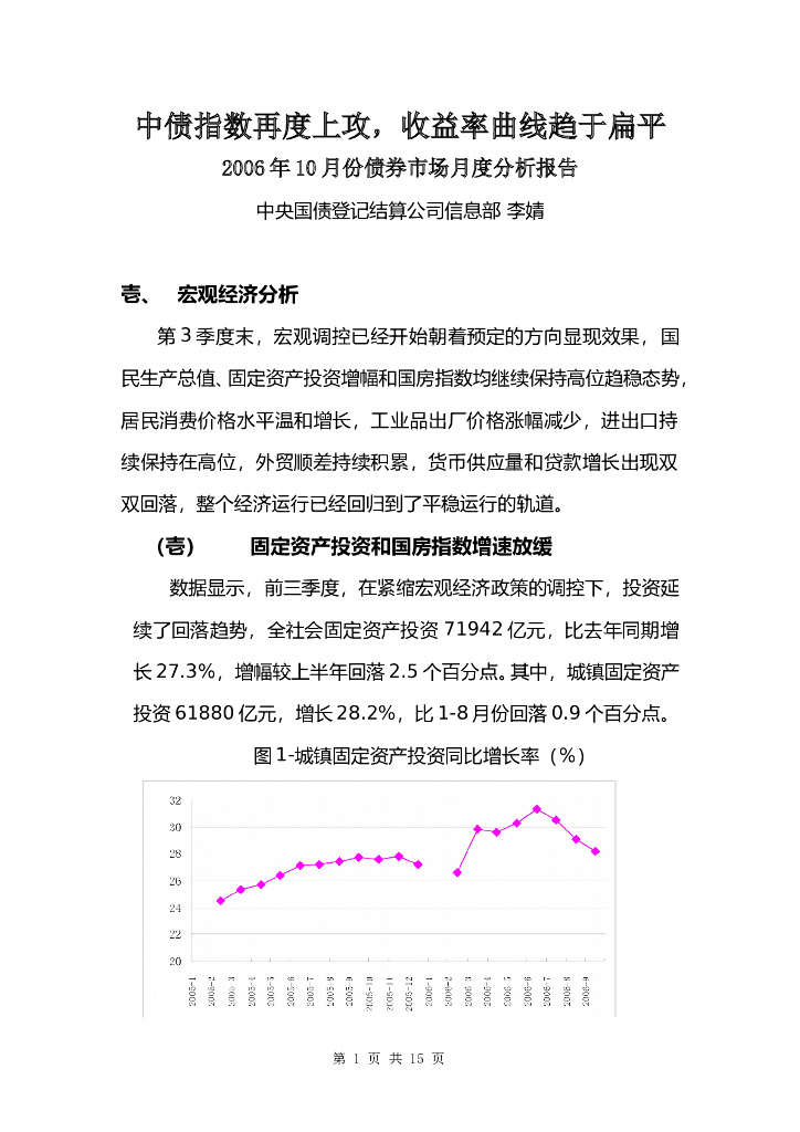 中债研发中心:2006年10月份债券市场月度分析报告.doc