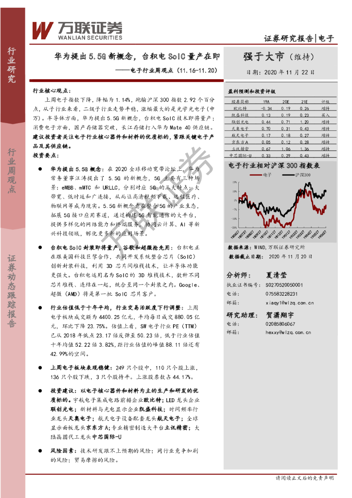 万联证券:电子行业周观点:华为提出5.5G新概念,台积电SoIC量产在即.pdf