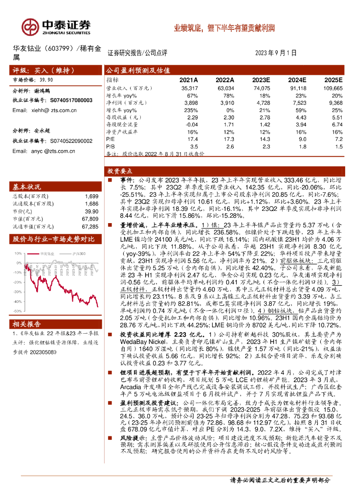 中泰证券:华友钴业(603799)-业绩筑底,锂下半年有望贡献利润.pdf