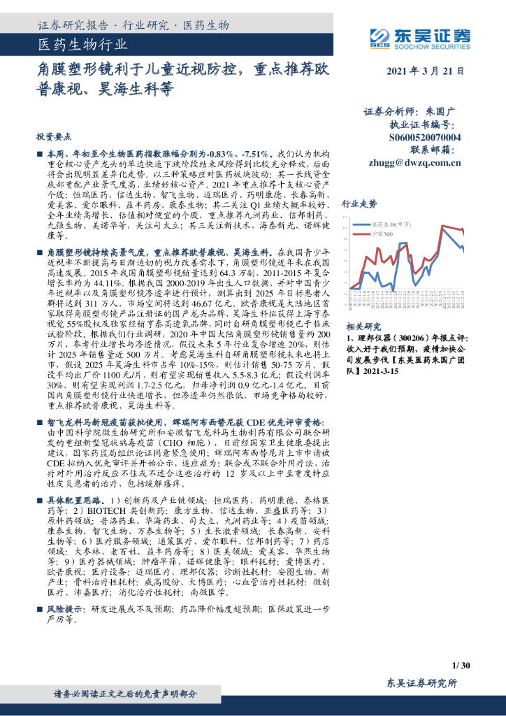 东吴证券:医药生物行业跟踪周报:角膜塑形镜利于儿童近视防控,重点推荐欧普康视、昊海生科等.pdf