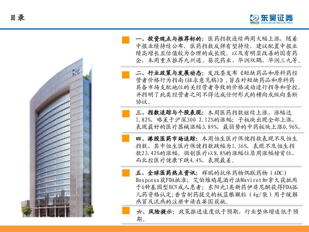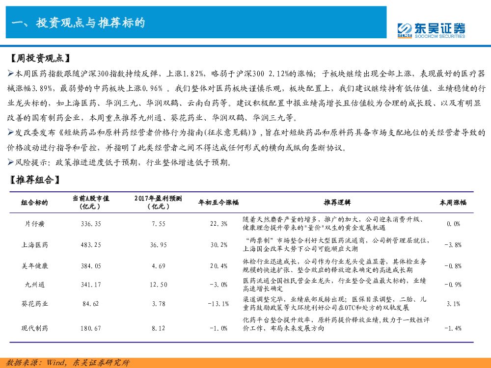 东吴证券:东吴医药行业周观点:医药指数反弹有望持续,建议配置估值合理白马标的;本周重点推荐华润三九、华润双鹤、葵花药业.pdf