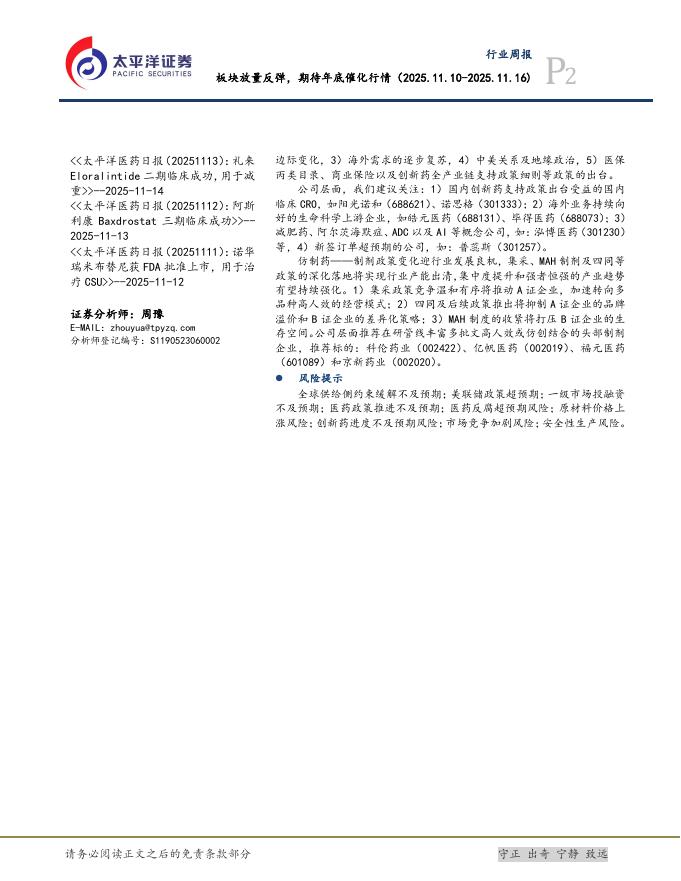 太平洋证券:医药行业周报:板块放量反弹,期待年底催化行情.pdf