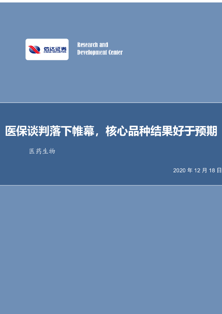 信达证券:医药生物:医保谈判落下帷幕,核心品种结果好于预期.pdf