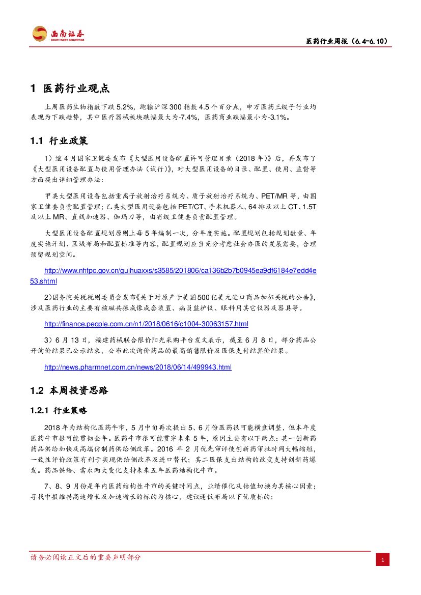 西南证券:医药行业周报:医药指数调整,择机布局高景气度子行业.pdf