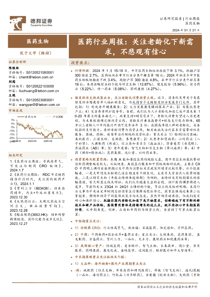 德邦证券:医药行业周报:关注老龄化下新需求,不悲观有信心.pdf