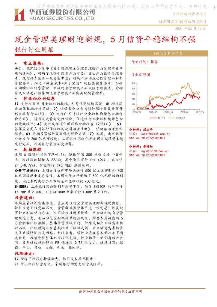 华西证券:银行行业周报:现金管理类理财迎新规,5月信贷平稳结构不强.pdf