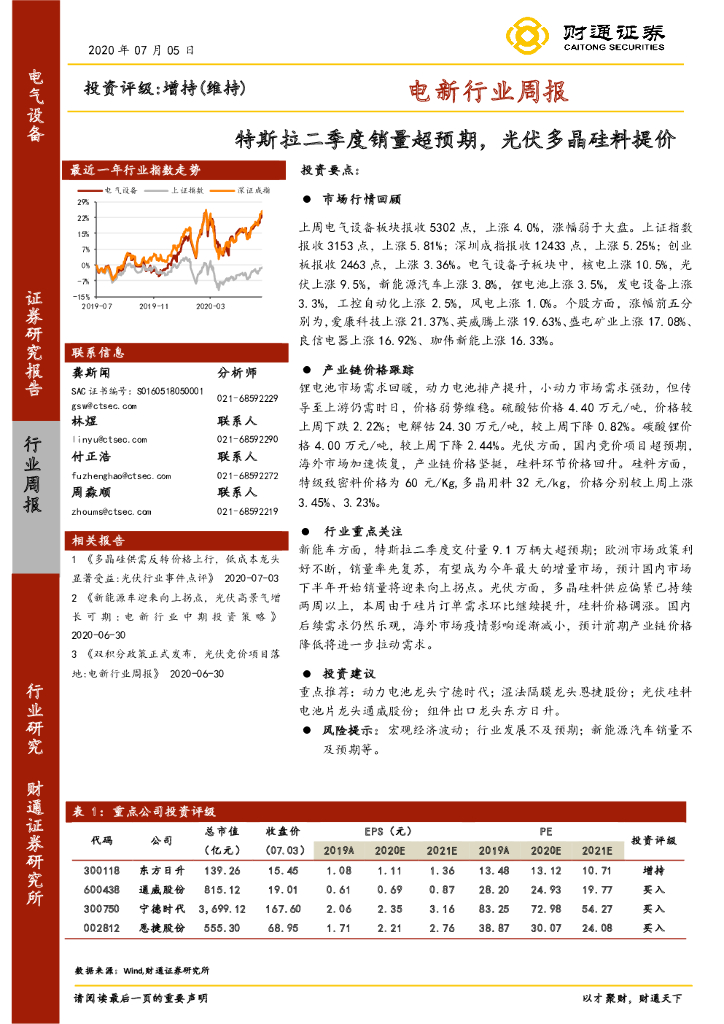 财通证券:电新行业周报:特斯拉二季度销量超预期,光伏多晶硅料提价.pdf