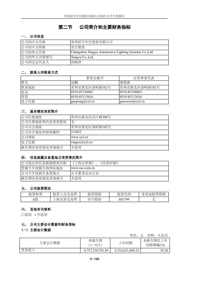601799-星宇股份:星宇股份2025年半年度报告.pdf