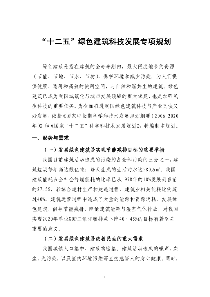 科学技术部:“十二五”绿色建筑科技发展专项规划(征求意见稿).pdf