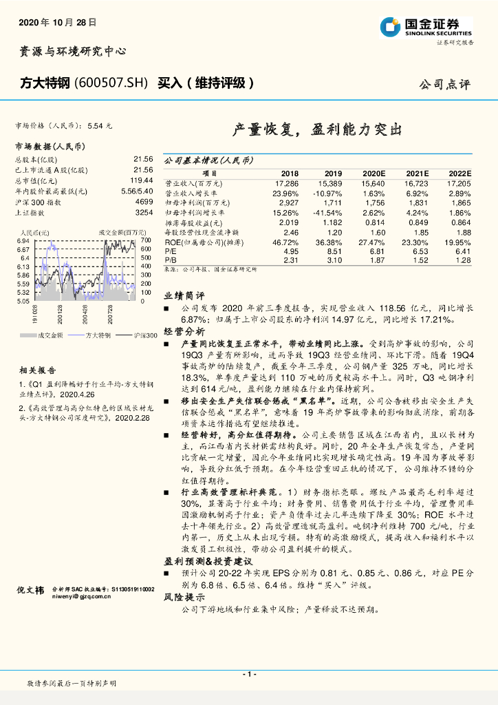 国金证券:方大特钢(600507)-产量恢复,盈利能力突出.pdf