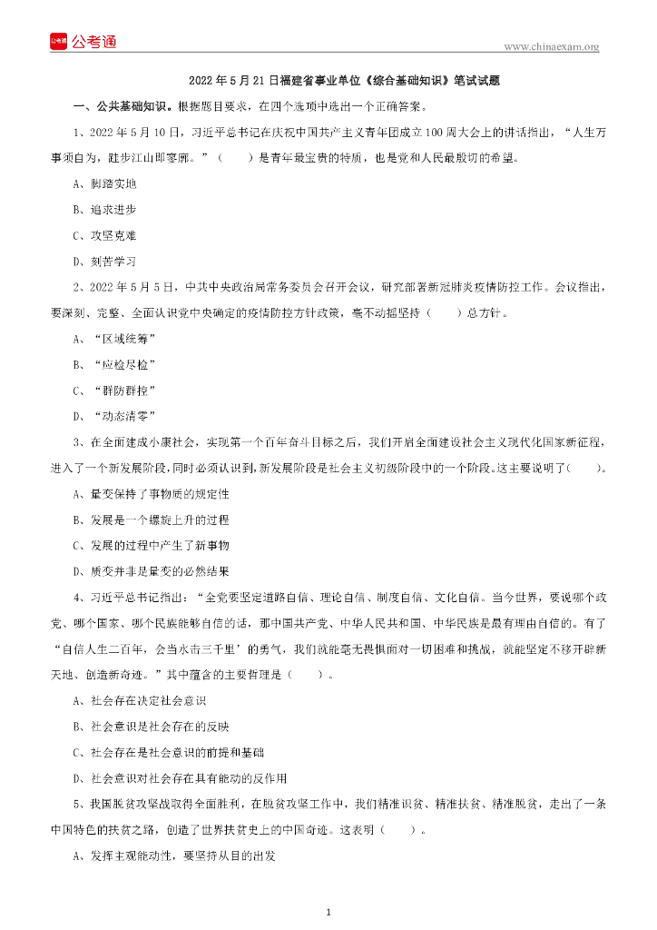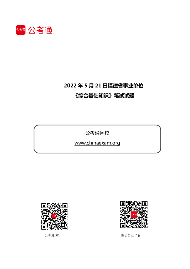 2022年5月21日福建省事业单位《综合基础知识》笔试试题.pdf