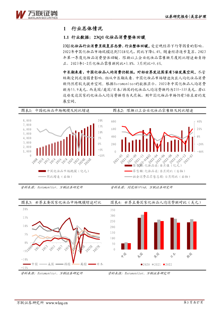 万联证券:化妆品行业2023年一季报综述:23Q1行业整体回暖,龙头表现持续亮眼.pdf