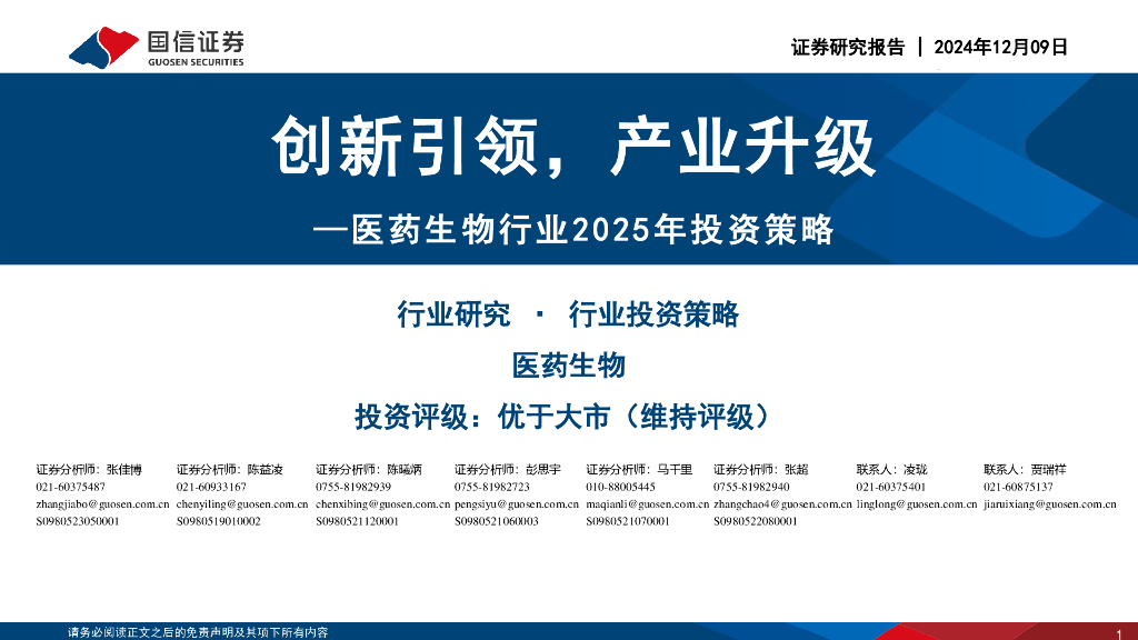 国信证券:医药生物行业2025年投资策略:创新引领,产业升级.pdf