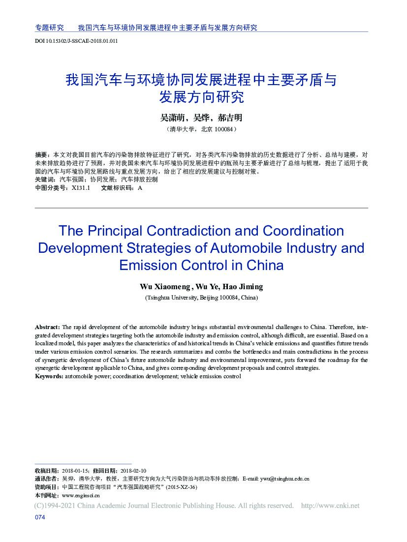清华大学:我国汽车与环境协同发展进程中主要矛盾与发展方向研究.pdf
