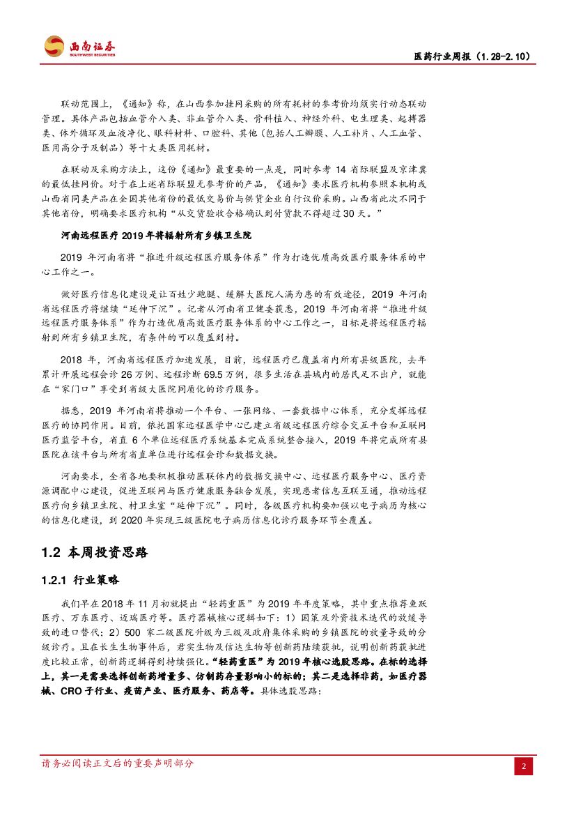 西南证券:医药行业周报:创新药产业链、医疗设备及偏消费药品为猪年三大投资方向.pdf