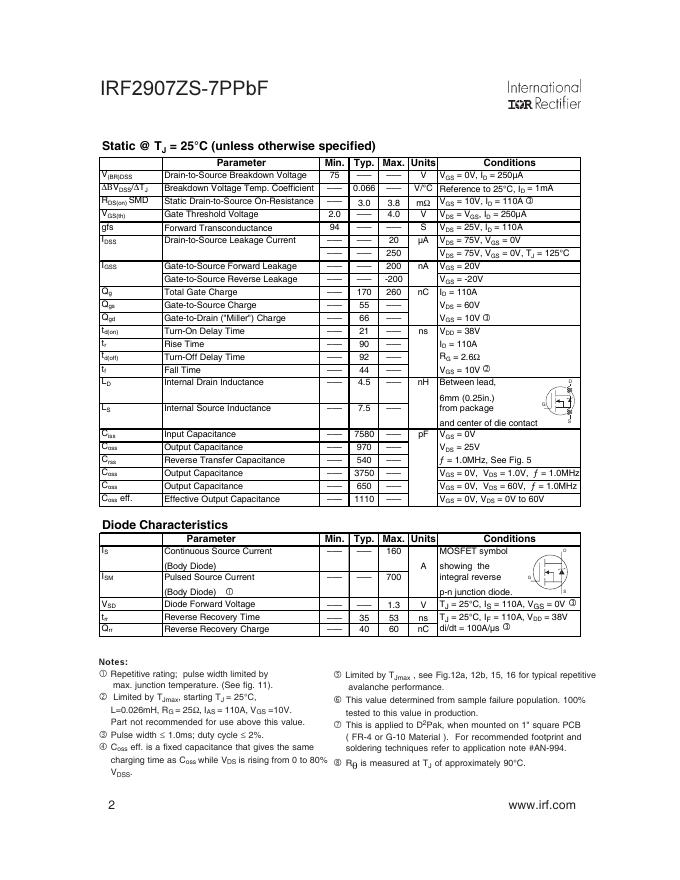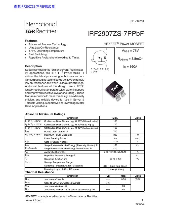 lnternational IOR Rectifier IRF2907ZS-7PPbF 数据手册.pdf