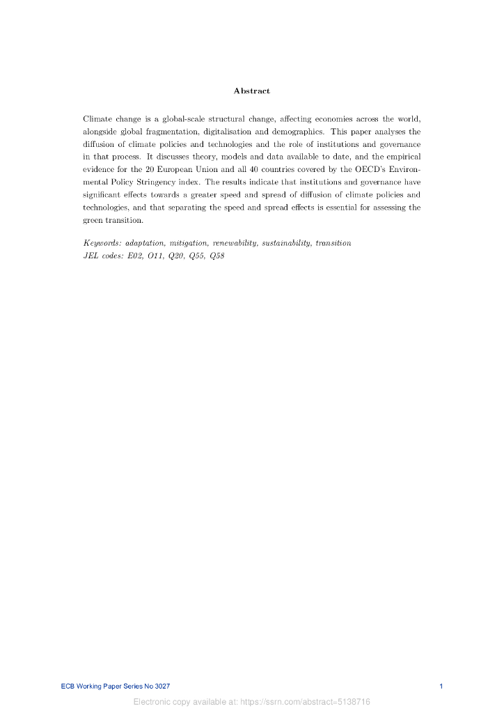 欧洲央行:气候变化政策和技术:与机构和治理的传播和互动(英文版).pdf
