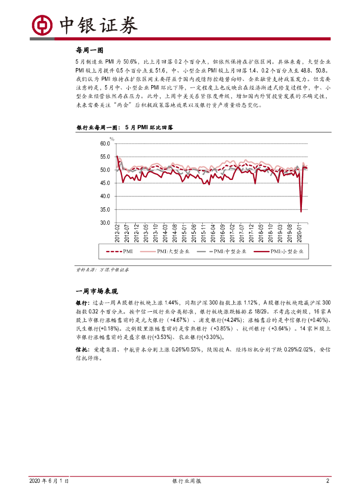 中银证券:银行业周报:5月PMI环比回落,关注中美局势走向.pdf