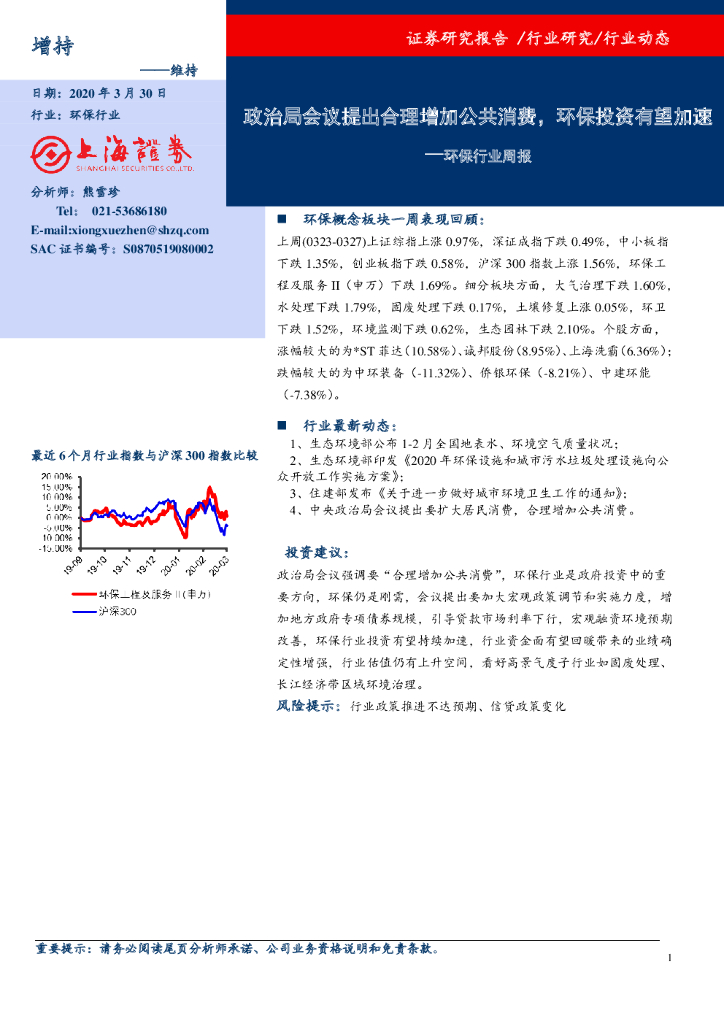 上海证券:环保行业周报:政治局会议提出合理增加公共消费,环保投资有望加速.pdf