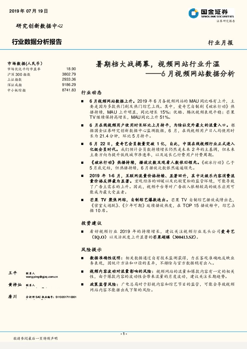 国金证券:6月视频网站数据分析:暑期档大战揭幕,视频网站行业升温.pdf