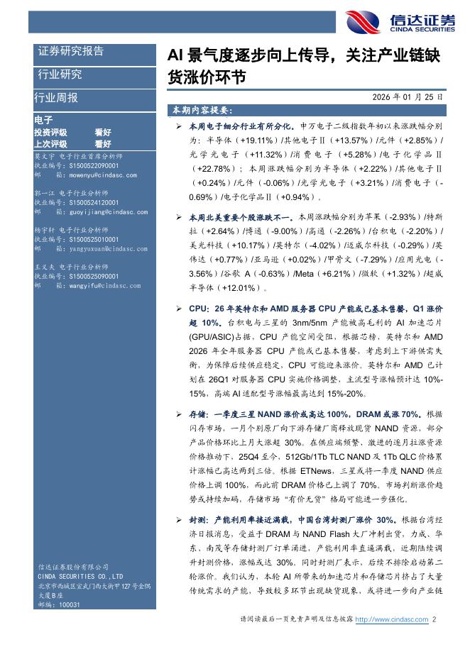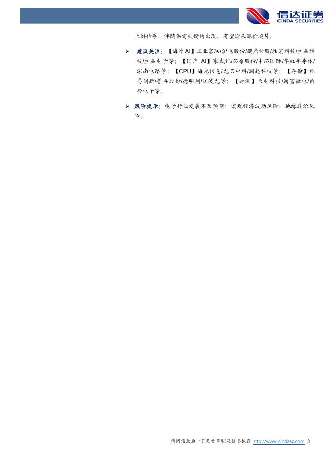 信达证券:电子行业周报:AI景气度逐步向上传导,关注产业链缺货涨价环节.pdf