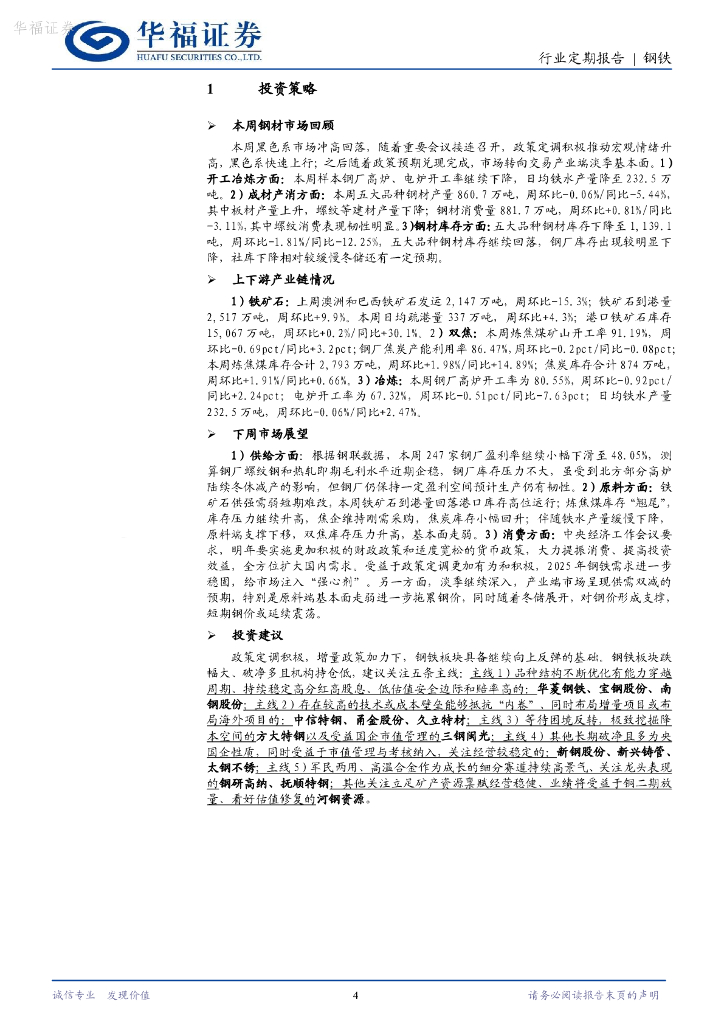 华福证券:钢铁行业周报:政策定调积极,关注原料端风险.pdf