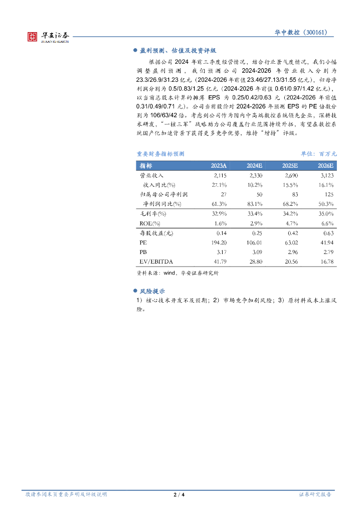 华安证券:华中数控(300161)-24三季报点评:Q3净利转正,数控系统收入增长提速.pdf