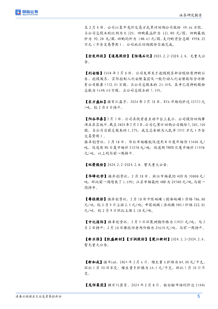 国海证券:基础化工行业周报:丁二烯、苯胺价格上涨,森麒麟拟回购注销股份.pdf