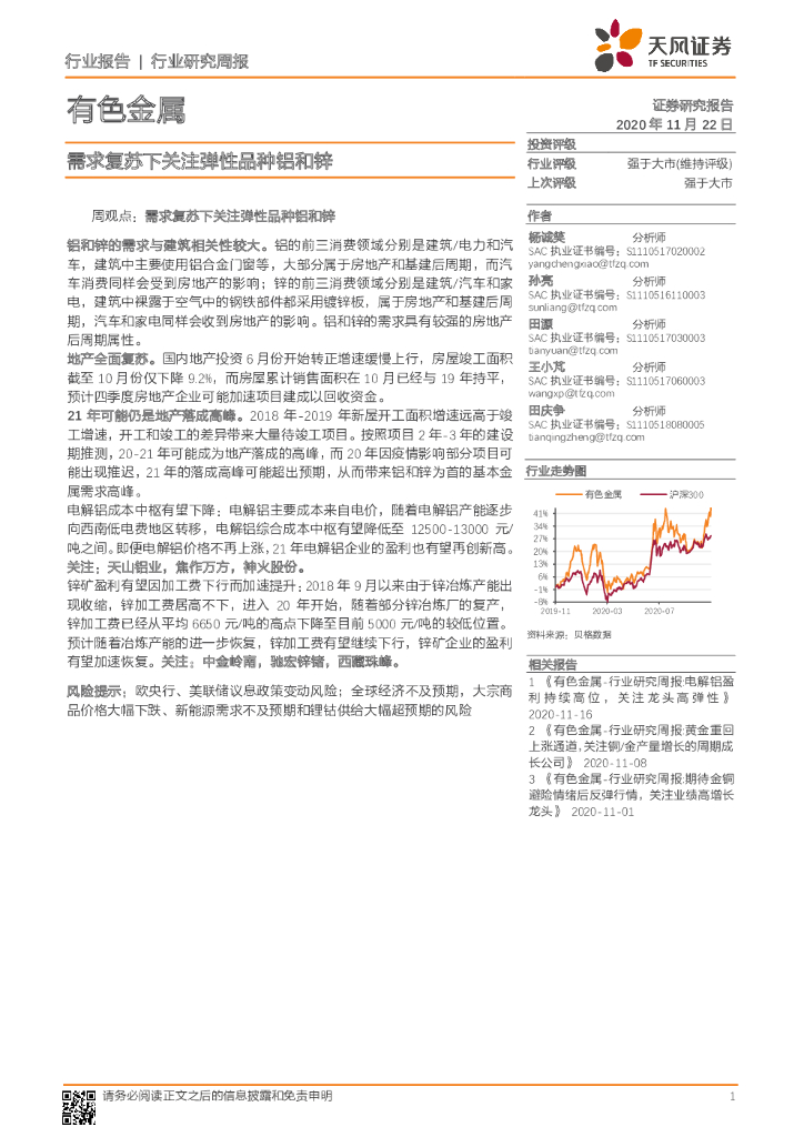 天风证券:有色金属行业研究周报:需求复苏下关注弹性品种铝和锌.pdf