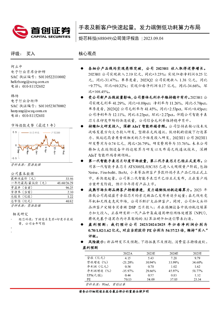 首创证券:炬芯科技(688049)-公司简评报告:手表及新客户快速起量,发力端侧低功耗算力布局.pdf