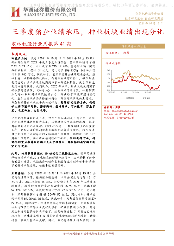 华西证券:农林牧渔行业周报第41期:三季度猪企业绩承压,种业板块业绩出现分化.pdf