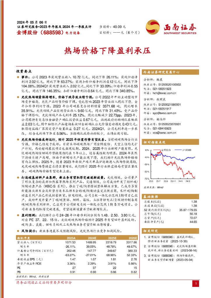 西南证券:金博股份(688598)-热场价格下降盈利承压.pdf