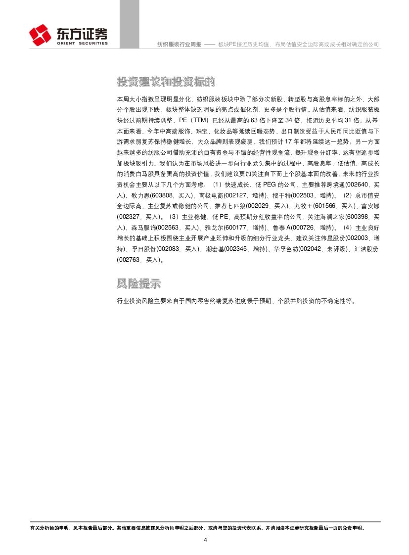 东方证券:纺织服装行业周报:板块PE接近历史均值,布局估值安全边际高或成长相对确定的公司.pdf