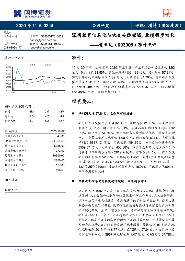 国海证券:竞业达(003005)-事件点评:深耕教育信息化与轨交安防领域,业绩稳步增长.pdf