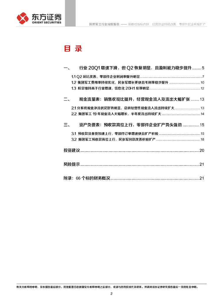 东方证券:国防军工2020年中报财务分析:前瞻性指标向好,经营效益持续改善,零部件民企积极扩产.pdf