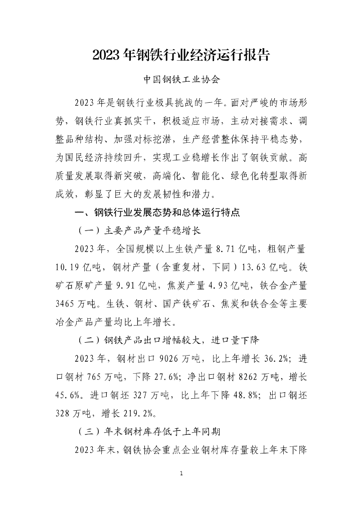 中国钢铁工业协会:2023年钢铁行业经济运行报告.pdf